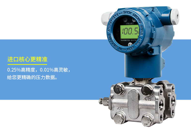 SIN-3051系列壓力變送器利用差動電容檢測的原理,當膜片兩側壓力不一致時,使容室中測量膜片產生位移,其位移量與壓力差成正比,通過電路處理將電容變化量轉換成4~20mA的二線制電流或電壓信號,可帶上458協議或者HART通訊協議功能。該變送器具有堅固抗振,量程,零點和阻尼現場連續可調。