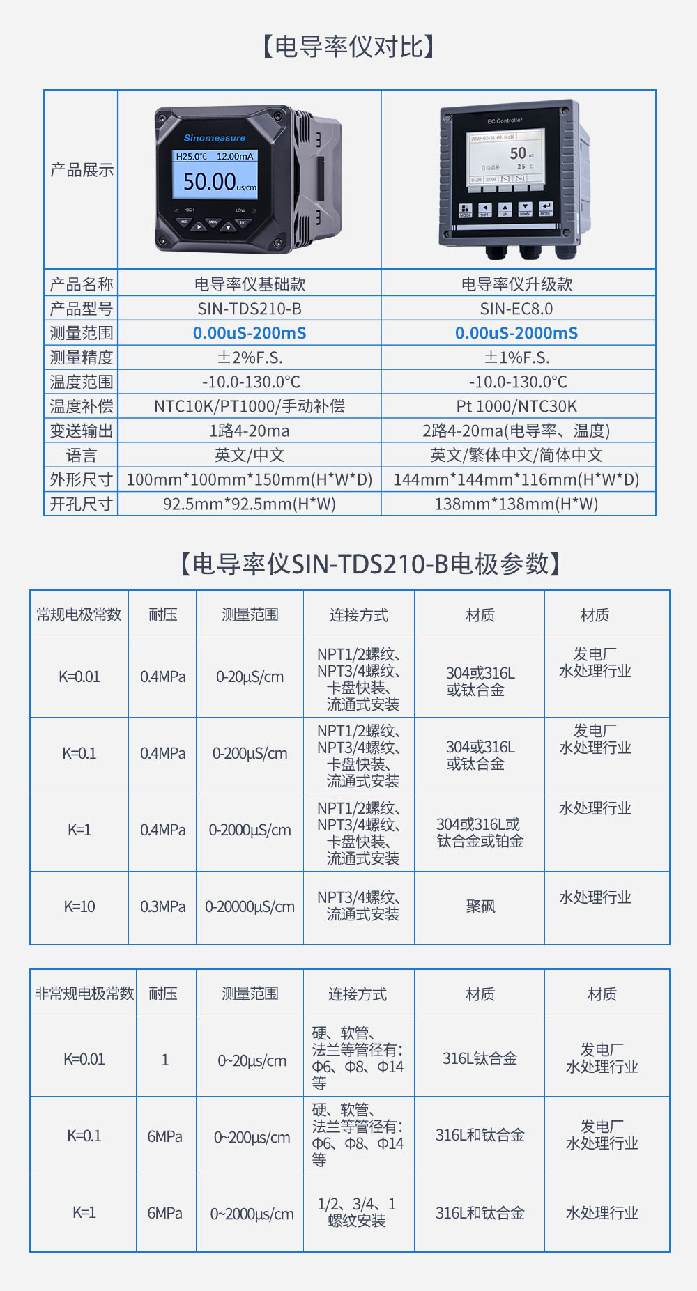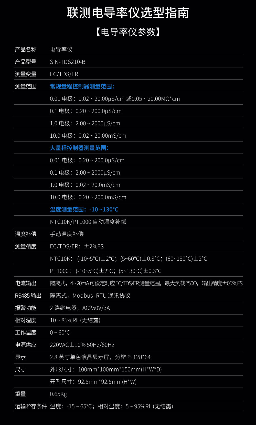 SIN-TDS210工業(yè)電導率儀表,可對各種工業(yè)用水的電導率(TDS)值進行連續(xù)測量和控制,本裝置廣泛應用于科學實驗裝備、化工、制藥、環(huán)保、冶金、造紙、食品、飲料及供水等行業(yè)。根據(jù)水工業(yè)的環(huán)境和特點結(jié)合國際供電標準,考慮了特殊環(huán)境的電氣設計規(guī)范,增加了220VAC供電。