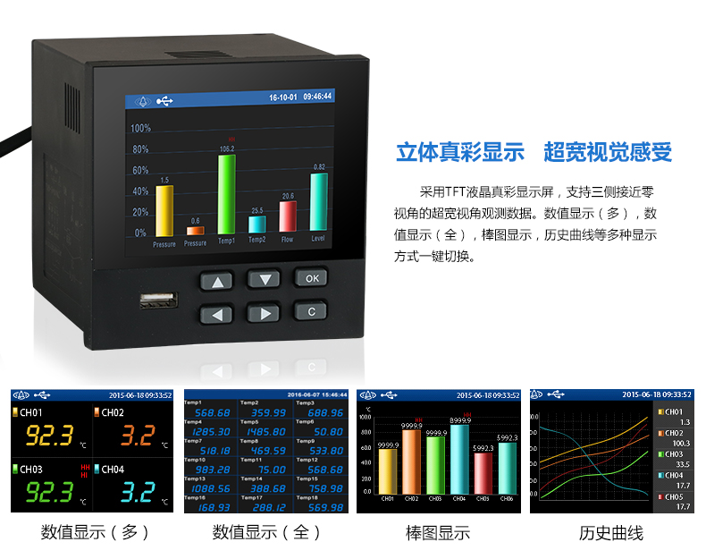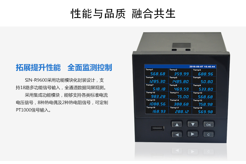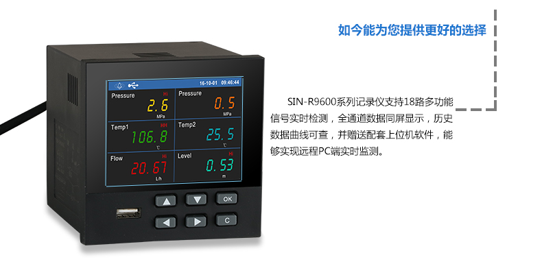 SIN-R9600無紙記錄儀內部采用高速、高性能32位cortex-M4微處理器。電路板經(jīng)過“防腐、防潮、防塵”三防涂覆處理。高性能儀表電源有強大的抗干擾能力,能有效抑制外部諧波干擾,大大提高了整機的穩(wěn)定性。