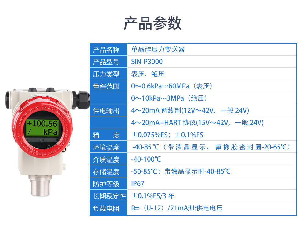 SIN-P3000單晶硅壓力變送器用于測量液體、氣體或蒸汽的液位、密度、壓力,然后將其轉(zhuǎn)變成4-20mAHART電流信號輸出,也可與HART375或BST Modem相互通信,通過他們進行參數(shù)設(shè)定、過程控制。與傳統(tǒng)壓力變送器的區(qū)別在于它使用的是納米單晶硅作為傳感器材料。