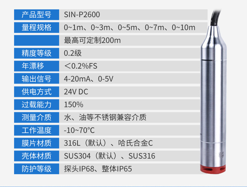 聯測SIN-P260投入式液位計/水位計