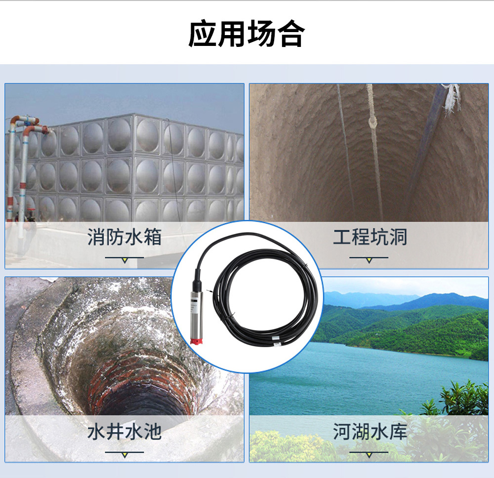 投入式液位變送器由高性能擴散硅壓阻式壓力傳感器作為測量元件,把與液位深度成正比的液體靜壓力準確測量出來,并經過信號調理電路轉換成標準(電流或電壓)信號輸出,建立起輸出信號與液體深度的線性對應關系,實現對液體深度的測量。